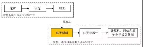 高純?yōu)R射靶材行業(yè)屬于電子材料領(lǐng)域,其產(chǎn)業(yè)鏈上下游關(guān)系如下: