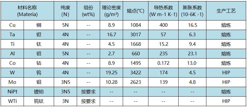 燦元在半導(dǎo)體及微電子領(lǐng)域中主要提供以下靶材產(chǎn)品: